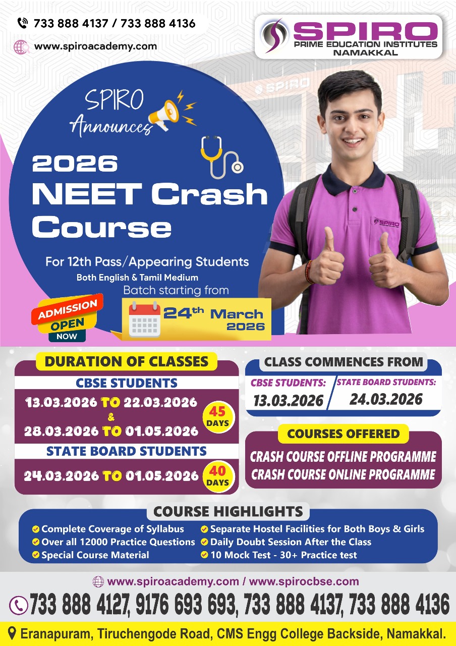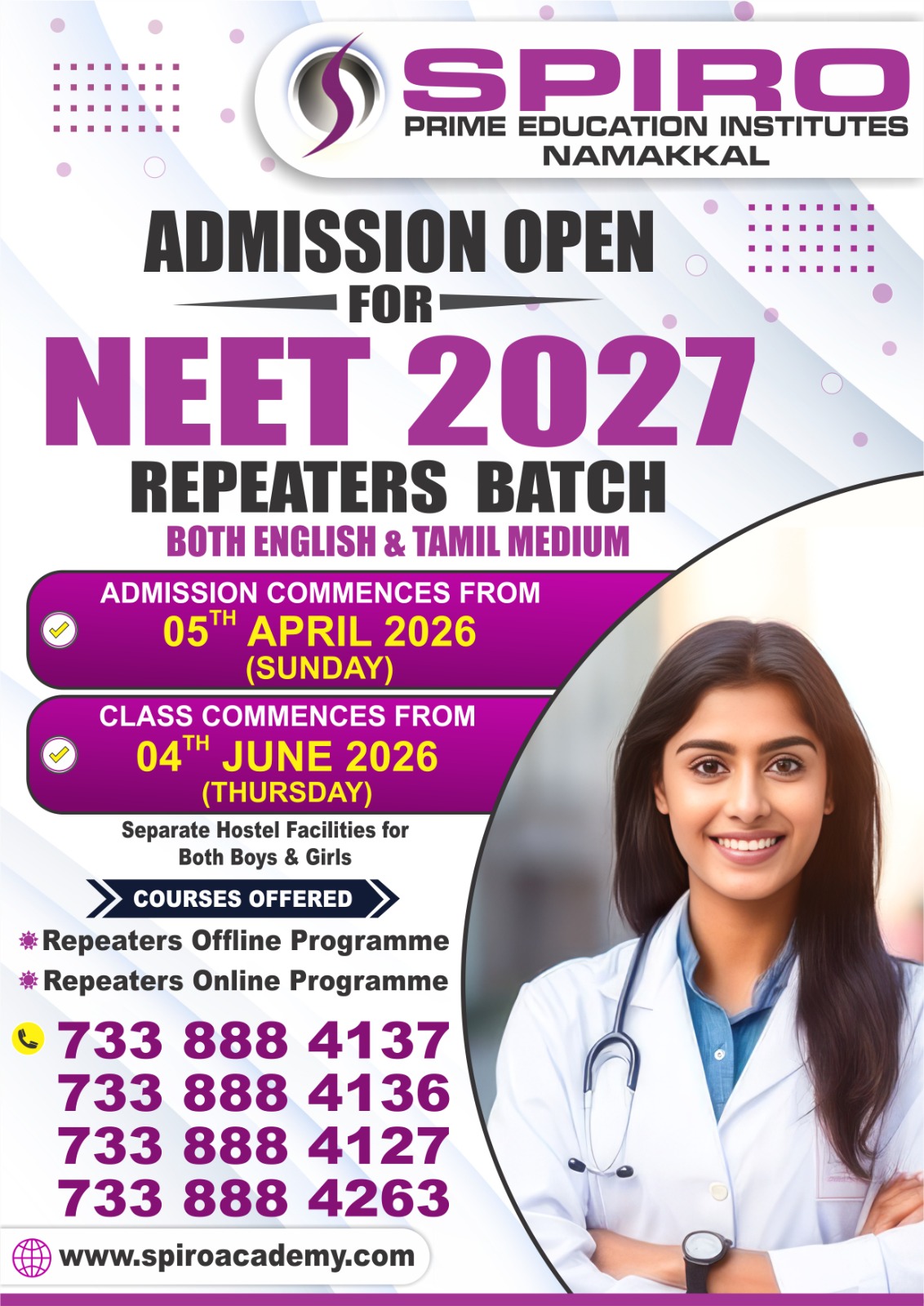 SPIRO'S is a premier organization established and conceived with a pioneering vision to meet all the needs of MEDICAL, ENGINEERING aspirants under one roof. Every child’s meritorious education and brilliant career are our primary concerns.We started in 2005 as SPIRO PRIME EDUCATION INSTITUTES (a unit of SPIRO Groups of companies)with a vision to help students appearing for the Tamilnadu professional course Entrance Examination for admission to Engineering and Medical Colleges in Tamilnadu.